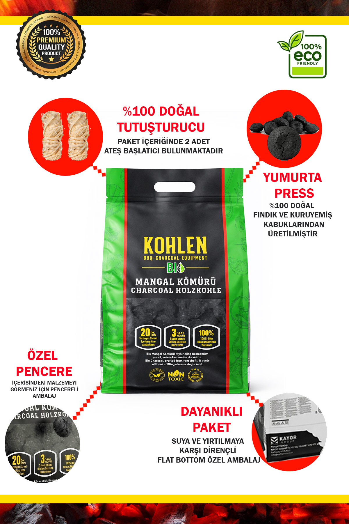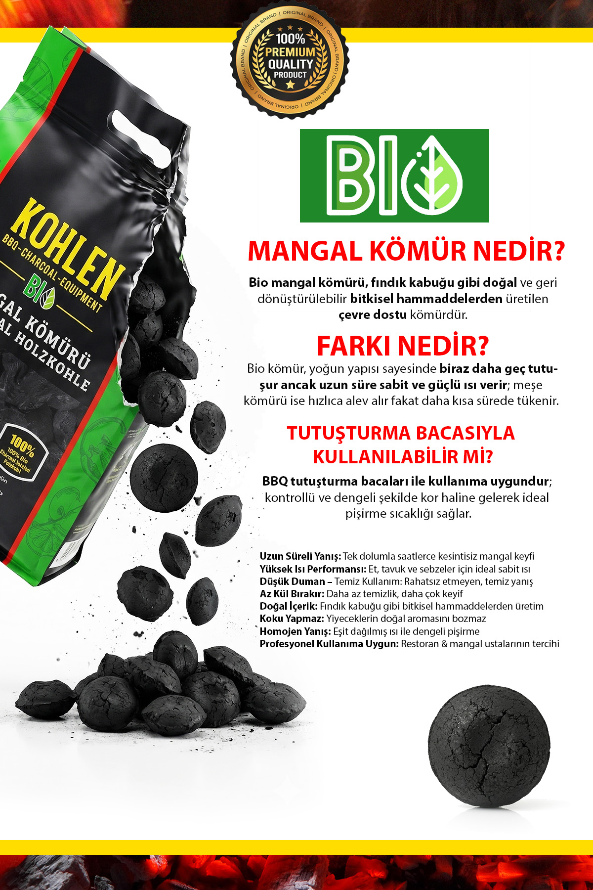 - Ürün: KOHLEN BioGlut BBQ Kömür